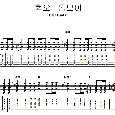 혁오 - 톰보이 [타브 악보]