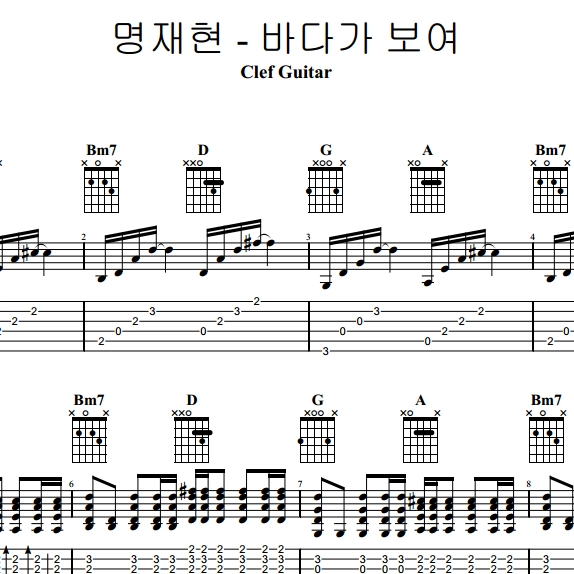 명재현 - 바다가 보여 [타브 + 코드 악보]