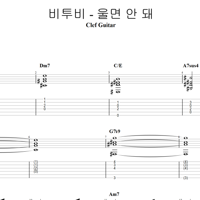 비투비 - 울면 안 돼 [타브 악보] 가사포함