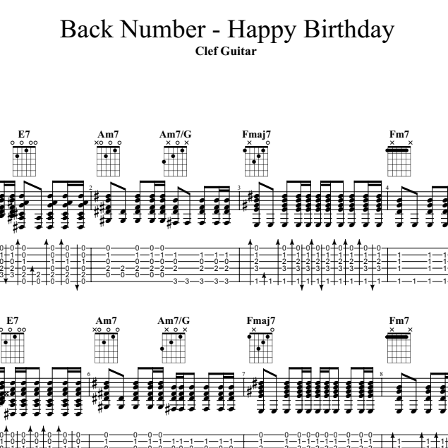 Back Number - Happy Birthday [타브 + 코드 악보]