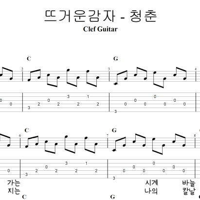 뜨거운감자 - 청춘 [타브 악보] 가사포함