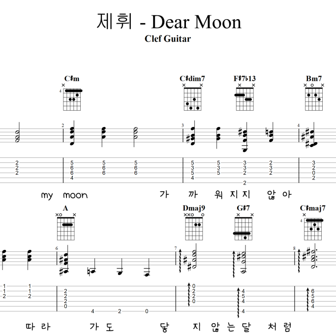 제휘 - Dear Moon (나의 아저씨 OST) [타브 + 코드 악보] 가사포함