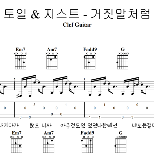토일 & 지스트 - 거짓말처럼 [타브 + 코드 악보] 가사포함