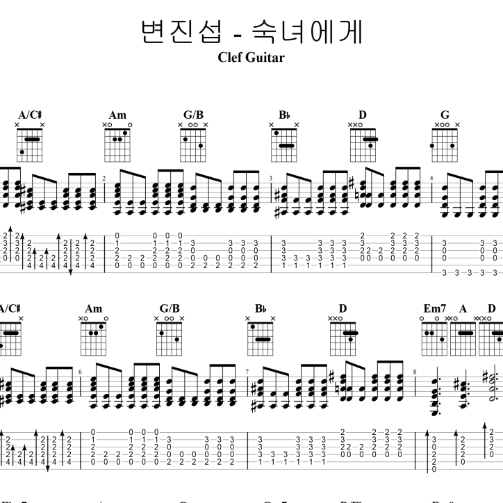 변진섭 - 숙녀에게 [타브 + 코드 악보] 가사포함