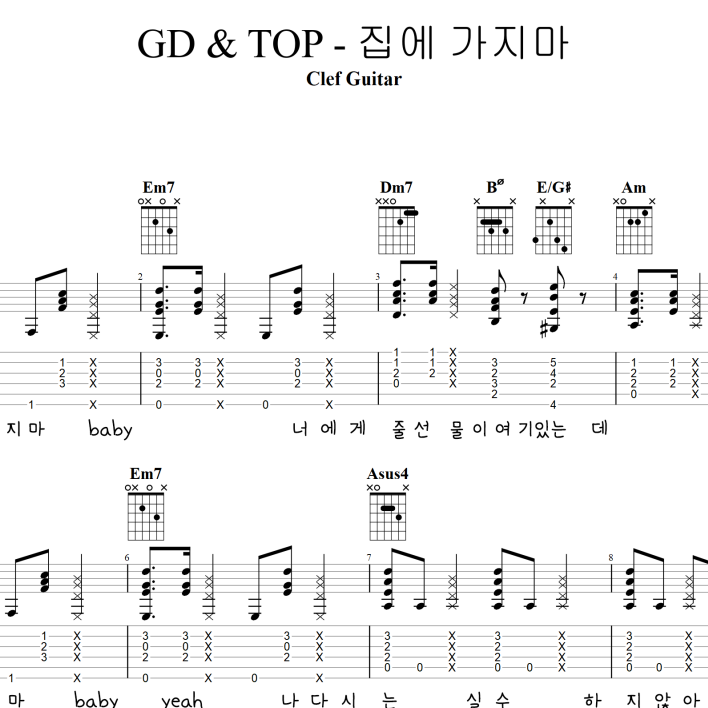 GD & TOP - 집에 가지마 [타브 + 코드 악보] 가사포함