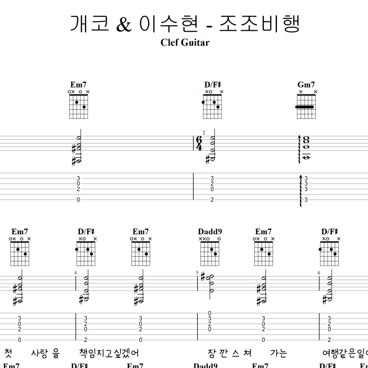 개코 & 이수현 - 조조비행 [타브 + 코드 악보] 가사포함