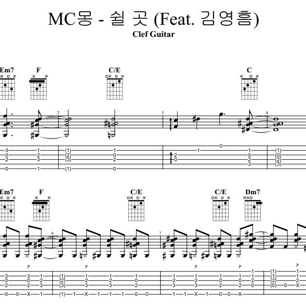 MC몽 - 쉴 곳 [타브 + 코드 악보]