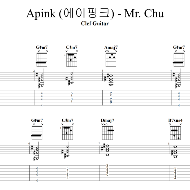 Apink (에이핑크) - Mr. Chu [타브 + 코드 악보] 가사포함