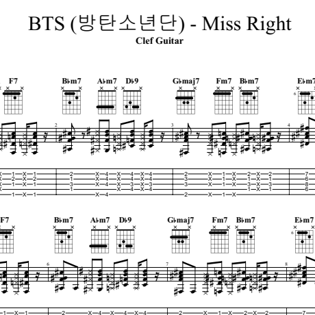 BTS (방탄소년단) - Miss Right [타브 + 코드 악보]