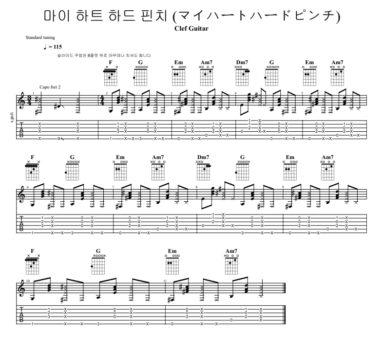 잡기 어려운 코드도 없고 주법도 간단해서