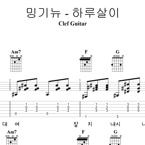 밍기뉴 - 하루살이 [타브 + 코드 악보] 가사포함