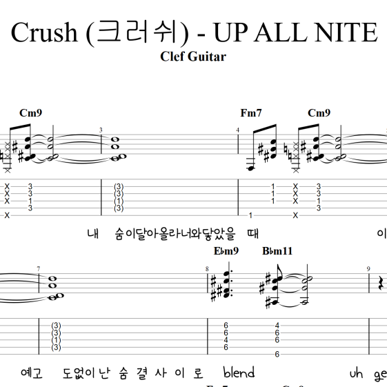 Crush (크러쉬) - UP ALL NITE [타브 악보] 가사포함