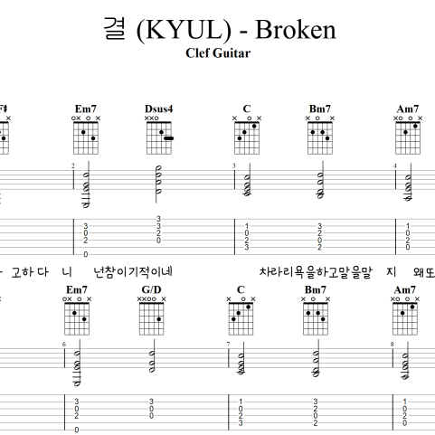 결 (KYUL) - Broken [타브 + 코드 악보] 가사포함