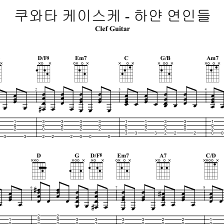쿠와타 케이스케 - ​하얀 연인들 [타브 + 코드 악보]