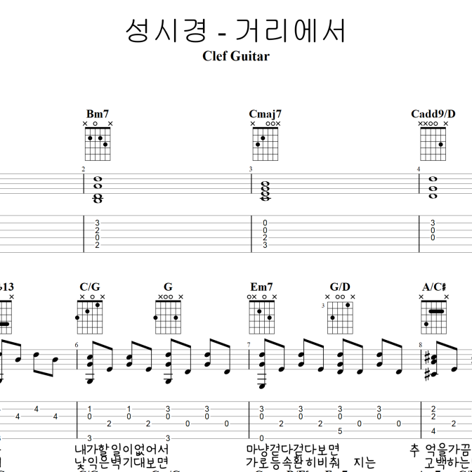 성시경 - 거리에서 [타브 + 코드 악보] 가사포함