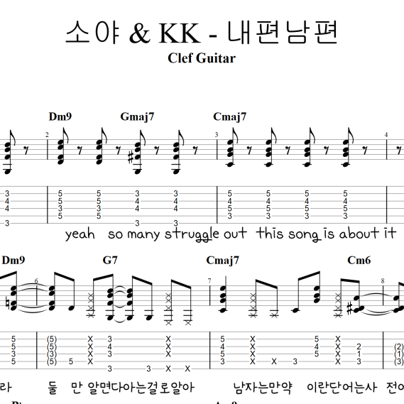 소야 & KK - 내편남편 [타브 악보] 가사포함