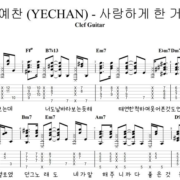 장예찬 (YECHAN) - 사랑하게 한 거야 [타브 악보] 가사포함